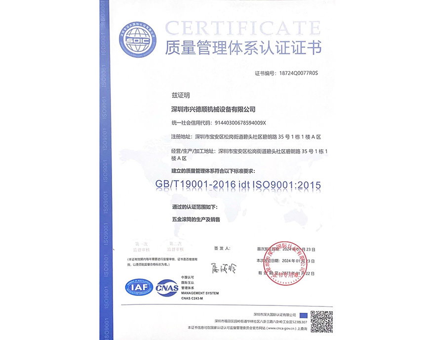 质量管理体系认证证书